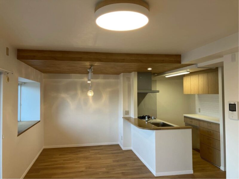 住宅設備はそのままに、床や壁紙の貼り替え、建具の塗り替え等で、明るい室内になりました。