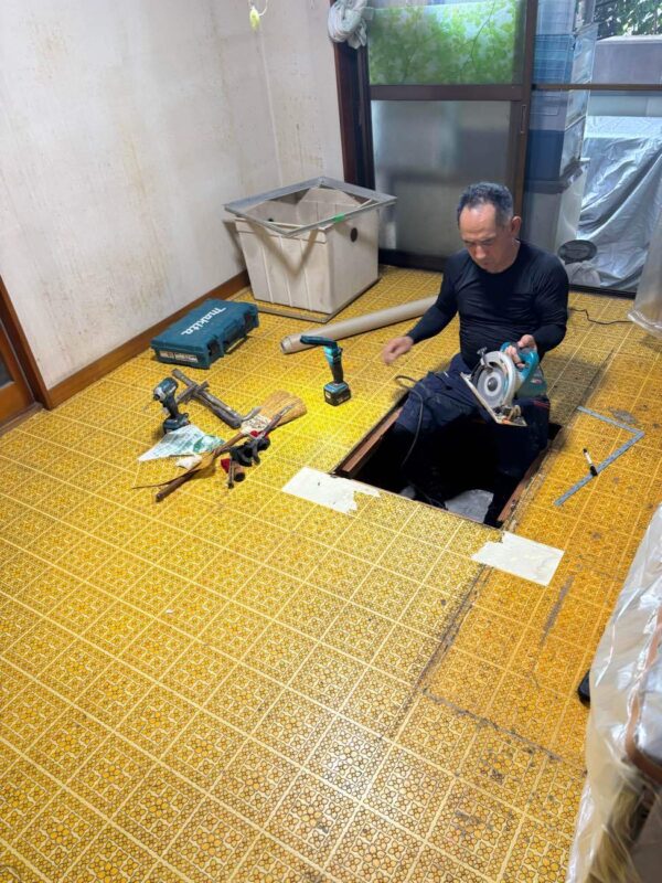床がぶかぶかしているとのお悩みでご相談いただき、床をはがして補修させていただきました。