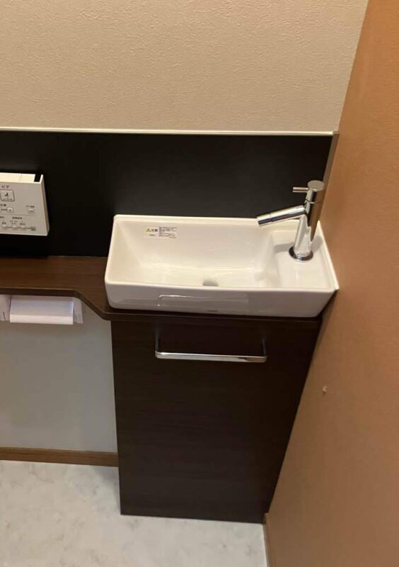 トイレ設備の交換とあわせて手洗いスペースの改修を行い、従来の手洗い器からカウンター付きの手洗い設備へ変更することで、
