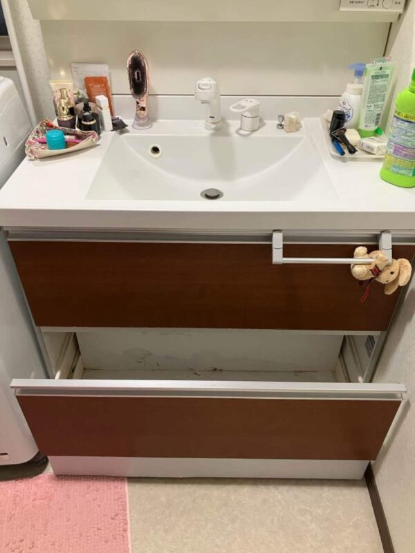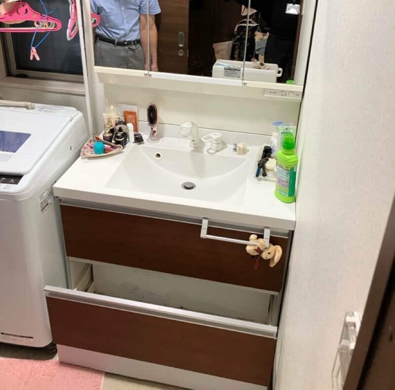 今回の工事では、洗面化粧台からの水漏れをきっかけに設備交換を行いました。